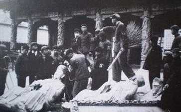 据说,大陆的红卫兵破坏一切的传统文化,不但把寺院摧毁了,甚至老和尚的岩洞也被挖开,当他们发现龛中端坐一位容颜如生的老和尚时,非常吃惊,赶紧又把岩洞封起来,不敢加以毁伤。