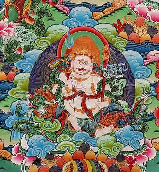 第二项功德并非单单指财富源源不绝而来的意思。世上有很多众生因过往业力所迫,今生贫困,再因种种烦恼及亡心驱使,便作种种不善业来换取温饱,如杀生、偷盗、邪淫、欺骗等等事业都属于这种情况,积集了更多之恶因,令未来生更苦更无依;修此白珍巴拉法门可以积善因缘,免于这样的「死路」,不需再作不善业以换取温饱,甚至有能力作广大布施来利益其它众生,同时自己也积聚功德资财令最终成就佛境。