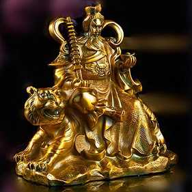 说法二:"财神"何许人也?根据《封神榜》所载,财神姓赵名公明。他原在峨眉山罗浮洞修道,因助纣攻打武王,死后被封为"金龙如意正一龙虎玄坛真君之神",并统领"招宝天尊"、"纳珍天尊"、"招财使者"、"利市仙官"四个部下。他们的职责都与财有关。道教供奉的财神,也是赵公明。根据道教传说,赵公明本为终南山人,自秦时就隐居深山,精修至道,功成之后,玉皇大帝封他为"正一玄坛元帅",简称"赵玄坛"。旧时财神庙和各家各户所供的财神,其尊容颇凶,乌面浓须,怒睁圆眼,头戴铁冠,一手执钢鞭,一手捧元宝,身下还跨有黑虎,故又有"黑虎玄坛"之称。传说这位赵公元帅职掌除瘟翦虐,驱病禳灾。凡有冤抑难伸,他会主持公道;人们买卖求财,他可以使之获利。他原先的职分并不是专职的财神,但能使人获利,别无他人可以代替,民间便把他看作财神了。过去,财神还有文武之分,崇文尚武的不同人家各有所司。崇文的人家供奉文财神,尚武的人家供奉武财神。文武之道虽不同,却都各有财可发。