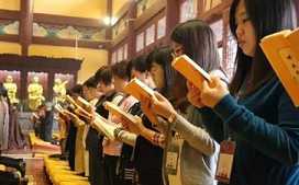 3.经文熟练:如果念很久,经文还不熟练,事实上是你念起来没有味道,若你诵经诵到如行云流水,自然就会有法喜;诵经诵到突然之间不见经,不见身,也不见人,那是个什么情形,自己去体会。也就是说这经文你要相当的熟练,读起经来身心才会投入。