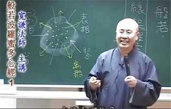 所谓的“观自在菩萨”不一定完全指的是普坦罗罗迦观自在菩萨,就是说不一定是在南海普陀山的观世音菩萨,或是哪一位菩萨,说实在的,只要我们透过般若的观照我们自己也能得以自在,也能够观自在菩萨。因为如果我们是一位大乘行者来讲我们发的不只是自我解脱的心,我们发的是学佛而成佛的大心,那么就称为菩萨,发菩提心者我们就称为菩萨,至于我们是不是能够“观自在”,那么就要看我们能否行深的般若波罗蜜多,不自在的菩萨是因为我们不懂般若波罗蜜多,当然我们从凡夫菩萨开始做起,从初学开始,所以我们说菩萨就好像初一的月、初二的月,成佛就等于十五的月圆满,但是也是从初一开始,从一点点开始,所以我们说从凡夫菩萨到圣贤菩萨到最后一阶段叫菩萨摩诃萨三个阶段,当然第一个阶段我们还不是太自在,但是我们可以朝着自在走来,那如何自在,我们是透过般若波罗蜜多,而且是深的般若波罗蜜多,所以说是“行深般若波罗蜜多时”,因为他行的是深的般若波罗蜜多的时候,照见五蕴皆空而度了一切苦厄,所以空的本身,般若本身就是能度一切苦厄的,因为让我们的自性妄执能够降低,我们的苦厄来自于我们的自性妄执,自性妄执会招惹很多很多的苦厄,所以我们如果一直照见我们五蕴皆有,那就根本不懂般若波罗蜜多,那就是一个不自在的菩萨,所以般若经典反过来读容易理解,因为反过来就是在讲我们凡夫之境界,透过法性空慧所显示出来就是圣者的境界,它有个特质是透过否定的符号,照见五蕴皆空,我们说人究竟怎么结合在一起,我们说这个人其实也等于是一合相,是众多因缘和合出来的,有五个蕴:色、受、想、行、识,也等于说形成出来的一个相是众多因缘和合而成,所以叫有情众生,是众缘和合而生,既然众缘和合而生那么终有一天会众缘离散而灭,所以我们说是四大假合,或者叫做五蕴和合出来的。五蕴,为什么叫做“蕴”?蕴是聚集的,色蕴有色蕴的聚集,受蕴有受蕴的聚集,想蕴有想蕴的聚集,行蕴、识蕴……尤其佛法来说属于心理的行为占得多,属于物质的反而少,所谓色,它是一种质碍性,而且它是会变坏的,色蕴它有这两个特质。什么是质碍性呢?假如一种物质是一根粉笔,这是第二根粉笔,这两根粉笔没办法把它融到一起,除非透过其它的方法,它们各自占了空间,它们之间会相互妨碍,各有各的空间,所以是有质碍性的。我们色身本身是色蕴的结合,当然不只是色蕴的结合,还包括受、想、行、识,受想行识是我们较看不到的,我们看一个人几乎看到的是色蕴,整个色身肉体,但是我们是否也看到这个人的表情是不同的,为什么会有不同的表情?因为从他的受想行识所显现出来的,尤其是佛法更注重心理的部分,属于物质的现象它占的比例反而少一些,但是所谓色蕴它集合了很多很多比方眼、耳、鼻、舌、身、意的根,既然有这些根,是不是有质碍性啊!是有质碍性的。我们坐火车抢了一个位子坐下来了,第二个人就无法坐下来,这就有质碍性!一个萝卜一个坑。一旦有质碍性,物质本身一定会变坏,为什么会变坏?物质是缘生出来的,它必然会缘灭,必然会缘变坏,所以色蕴不仅是眼、耳、鼻、舌、身根的和合,也可以说是地、水、火、风的和合,如果四大不调那就生病,四大离散就死掉,四大结合,其实不只地、水、火、风,还要有空及识进来才成为一个人,所以所以本身也是有众多因缘和合在这里,而且每一个因缘随时都在变,因为我们有色蕴,所以我们有受蕴,感受直接的领纳,如果是夏天外面很热,一进来好凉快,马上感受到舒服叫可意受,很合我的意,那是一种受,但是如果说外面很热,进来又没空调,眉头马上皱起来,那叫做不可意受,是很直接的受蕴领纳。这种环境上的还好,如果是人际间的,他对我笑或者对我瞪眼,那个受蕴马上出现,人际之间很容易就立刻影响了我们的想,他为什么对我笑?他对我有什么企图?为什么瞪我一眼?我有哪里得罪他了?如何如何就开始想了,我们想之前要有受,所以受是很复杂的,整个环境很舒服,那在人际之间碰上不舒服的状况或许我们稍微能忍受,但大环境很差,热得不得了,五蕴炽盛火上加火,马上想的都是很差的一面,所以这些也都是种种因缘和合出来,所以想,或往好的想,或往坏的想,都是在我们的一念之间。一旦想,就会影响我们的行为,我要去报复他或者怎样怎样。如果以唯识它讲得更细,受、想、思,那个思是更集中的,想是比较涣散的,妄想妄想,想本身是比较涣散的,思是会做一些整理,去审虑、思考,思虑之后更要集中,发动之后付诸行动。所以付诸行动的方式也很多样化,最后蕴藏在我们的第八阿赖耶识,所有的种子所造的业力,就蕴藏在我们意识里第八识的田中,业因为蕴藏在第八识的田里头,将来它的业障或福报会现前,是跟我们这样一串的活动有关系。有的种子比较早成熟,就现出果报来,有时候会现出业障来,要看里面是善的种子还是恶的种子,到这辈子结束之后它会大量成熟,成熟出我们的色蕴,眼、耳、鼻、舌、身到底长什么样子,如果我这辈子老是去障碍别人光明,人家要去学佛,你老骂人家说你吃饱没事做,你为什么要去听经?为什么要去闻法?那怎么办?这些也会影响你的受想行识,然后种到第八识田里,之后这些种子结果出来就会变成障碍自己光明的果报,会得到生盲的果报,眼睛会不好,乃至于瞎掉,那是果报的问题,那是过去所造